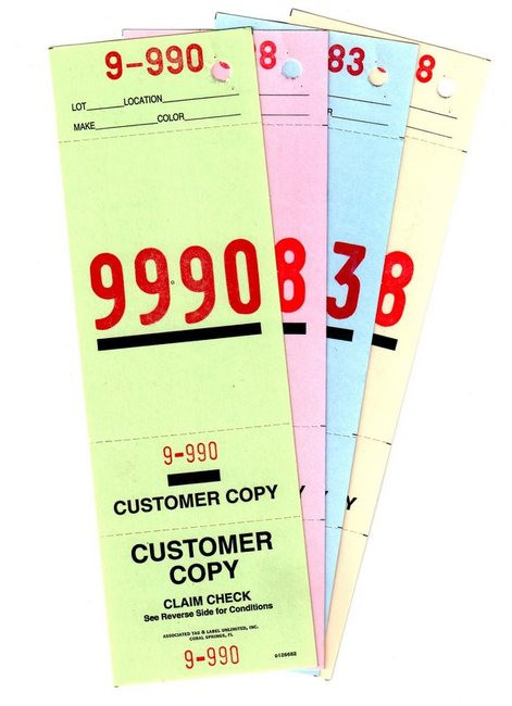 SH2 - 4 PART VALET PARKING TICKETHOLES TOP PART1,000 PER PACKPRINT 2 SIDED 2 3/4" X 8 1/2"9 PT CARD STOCKRED NUMBERS
